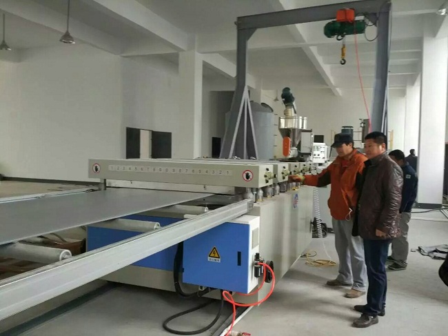 該條生產(chǎn)線是我公司根據(jù)德國(guó)技術(shù)和國(guó)內(nèi)發(fā)泡制品業(yè)特點(diǎn)獨(dú)立研發(fā),由錐形雙螺桿擠出機(jī),板材模具,定型臺(tái),冷卻托架,牽引機(jī),切割機(jī),機(jī)械手等部分組成。擠出機(jī)采用專門設(shè)計(jì)的螺桿,生產(chǎn)線全部采用進(jìn)口電器,如西門子電機(jī),ABB變頻器,歐姆龍溫控表,施耐德等品牌,性能卓越,能夠長(zhǎng)時(shí)間無故障運(yùn)行。